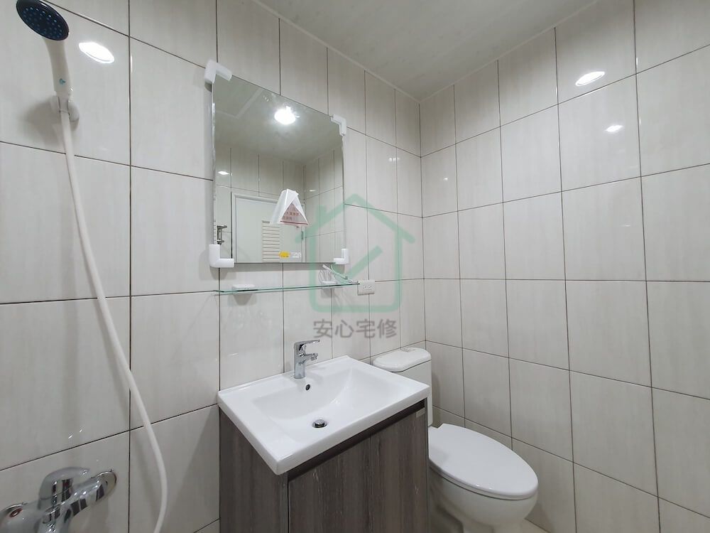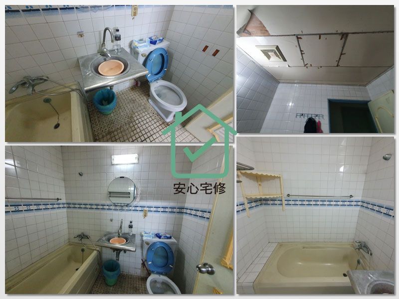 拆除、運棄、水電、門扇、泥作、6層防水(含防水保護)、磁磚、衛浴設備、臉盆浴櫃、天花板、油漆