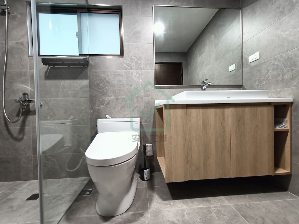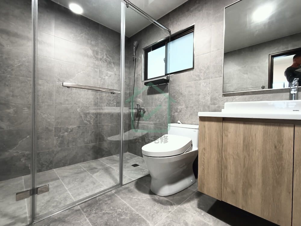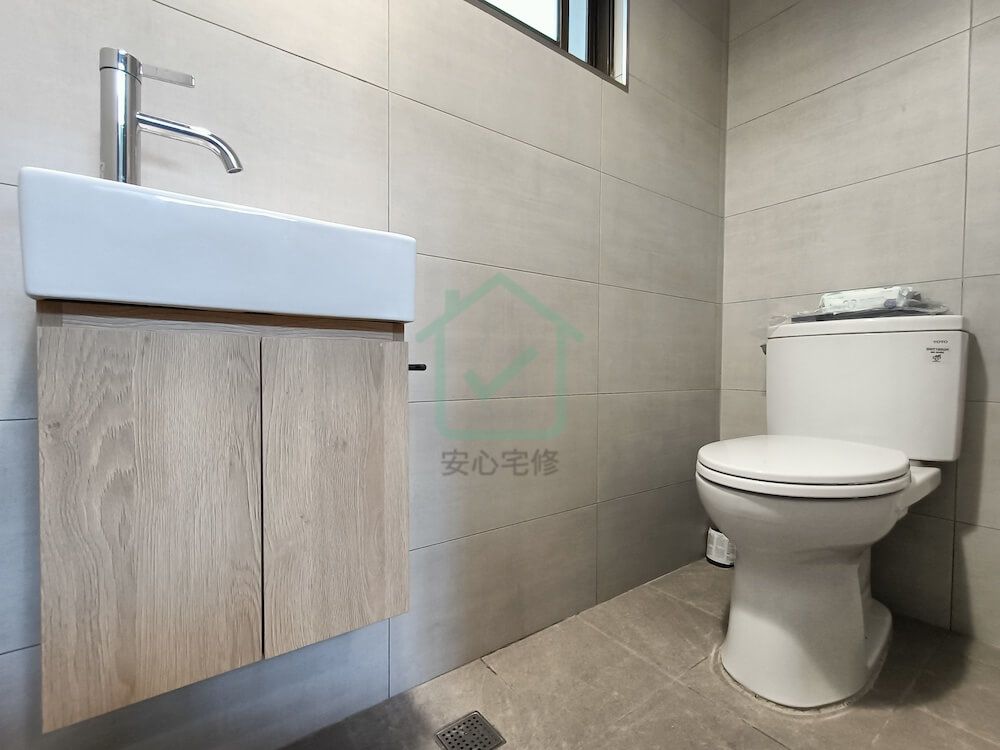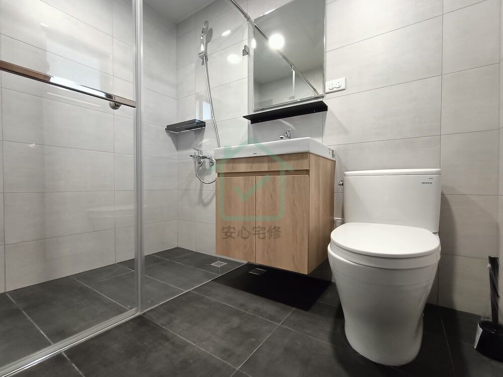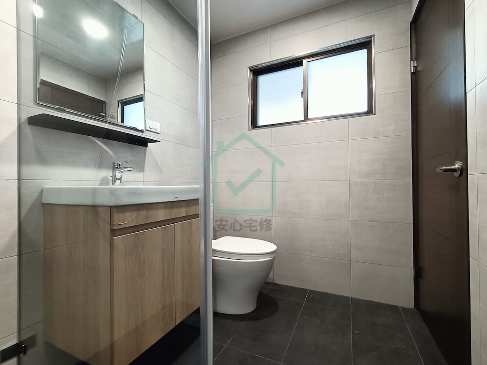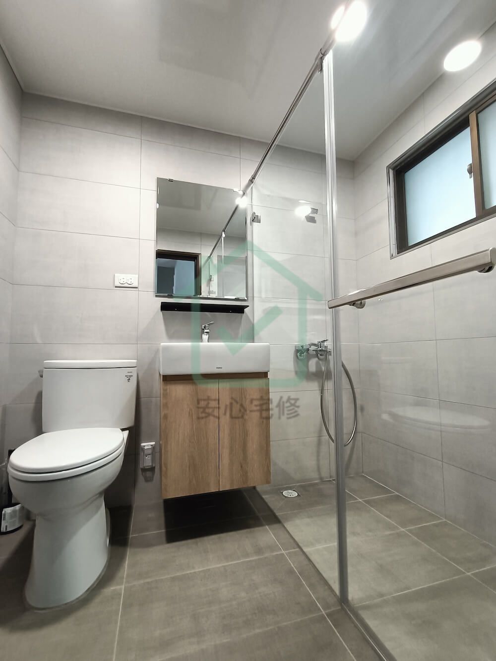 整修需求:拆除、運棄、水電、門扇、鋁窗、泥作、6層防水(含防水保護)、磁磚、衛浴設備、臉盆浴櫃、淋浴拉門、天花板、鐵材、油漆