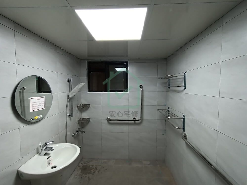 整修需求:拆除、運棄、水電、泥作、6層防水(含防水保護)、磁磚、衛浴設備、浴室扶手、天花板